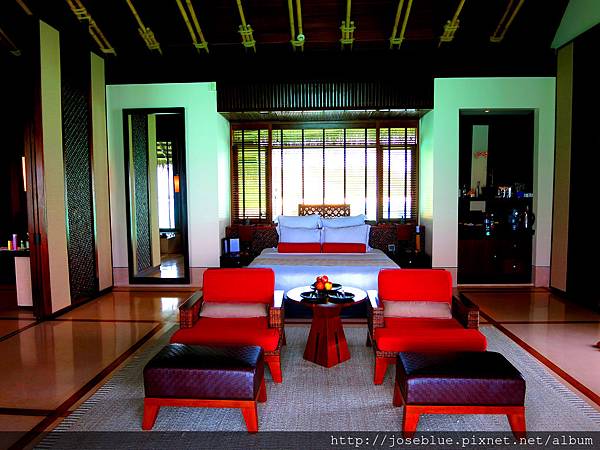 入宿 One&Only水上屋五天四夜,雖然發生諸多與行前期望不符的意外。但該旅宿超高規格硬體設施,浪漫到無以復加房型裝飾。讓新婚夫妻倆人,唯一一次動了生孩子念頭 (所幸當時肚子沒爭氣啊呼撒)。(婆婆表示 : 從明天開始你們就搬到那裏去住好了。➡ 設計對白)