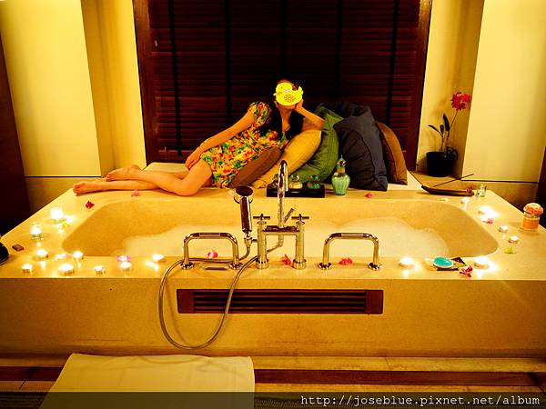 結果,結果 ... 再度回到房間時,整棟別墅浪漫滿屋、鳥語花香、爵士音樂悠然流暢,伊蘭麝香精油味濃到嗆鼻,玫瑰花瓣滿鋪折成愛心形狀白色床單,連泡泡浴及小蠟燭都點燃擺放妥當。