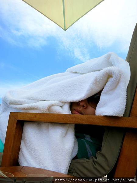 而新婚夫君,搶走我的墨鏡躲在太陽傘底下,還不忘用浴巾包緊全身,一邊哀號「太陽好大我要曬傷了嗚嗚」。我是嫁給吸血鬼了嗎嗚嗚?